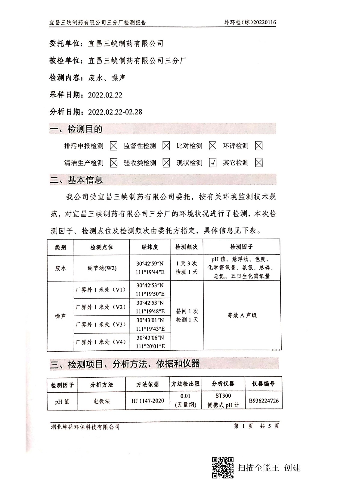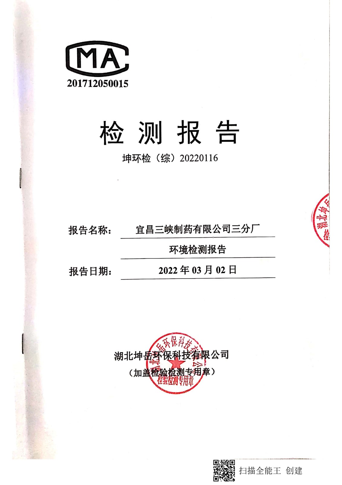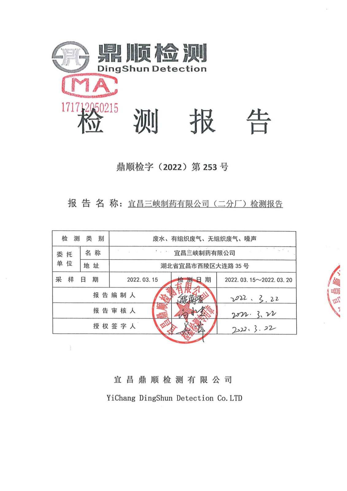 宜昌三峽制藥有限公司一季度環(huán)保信息公開