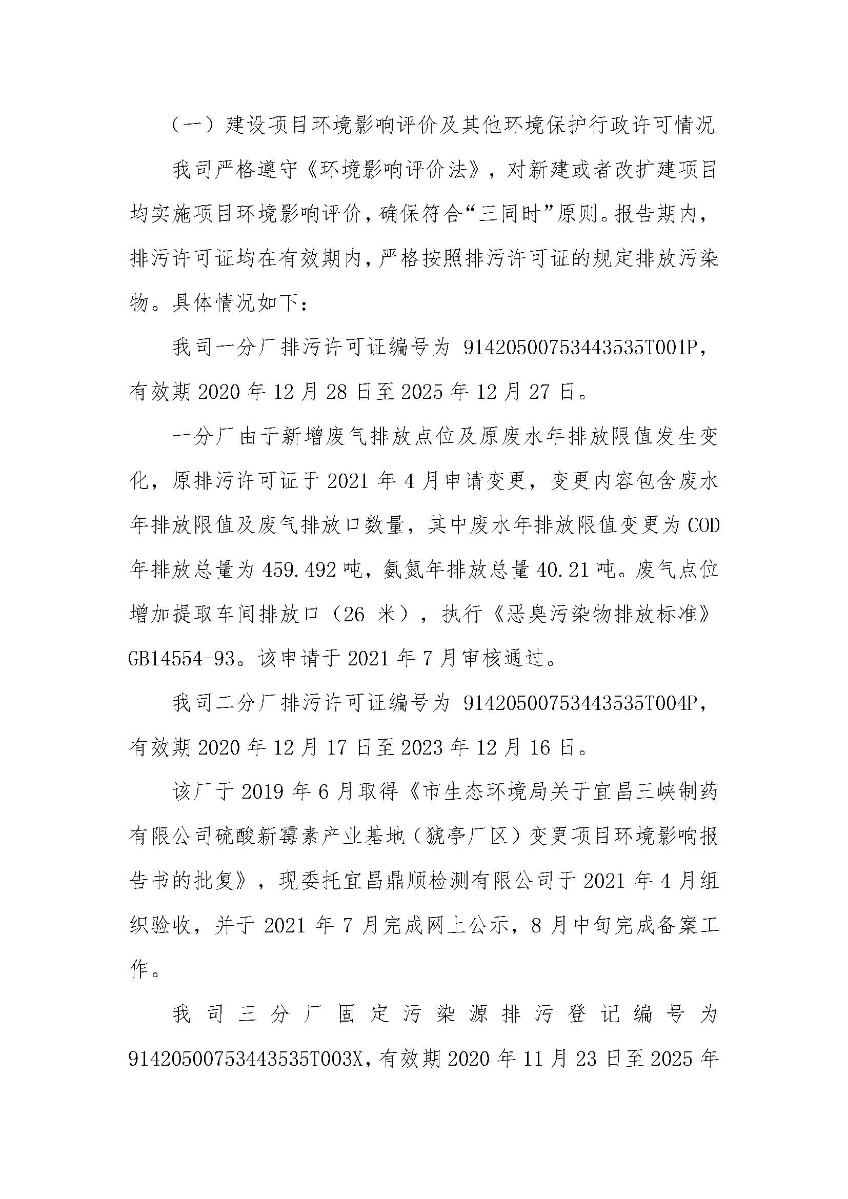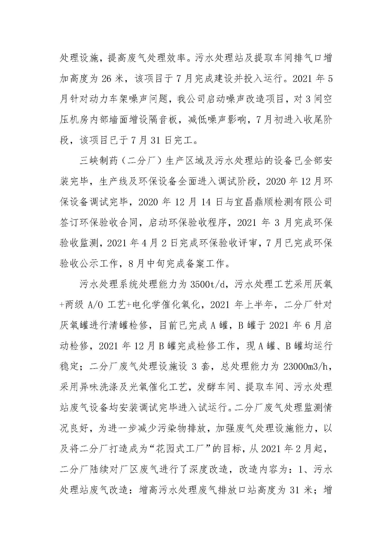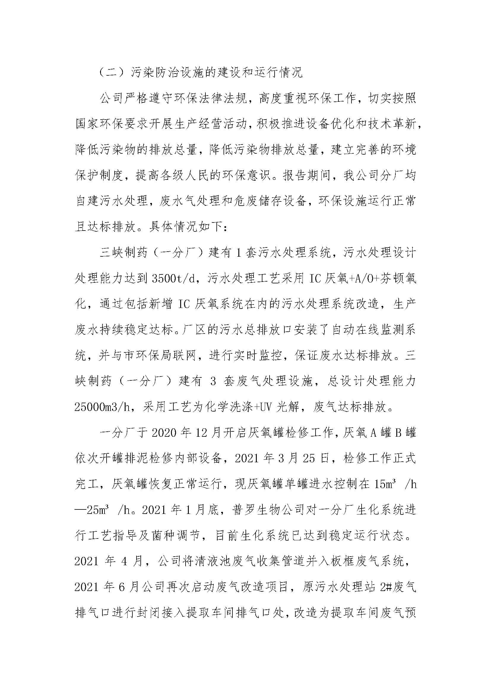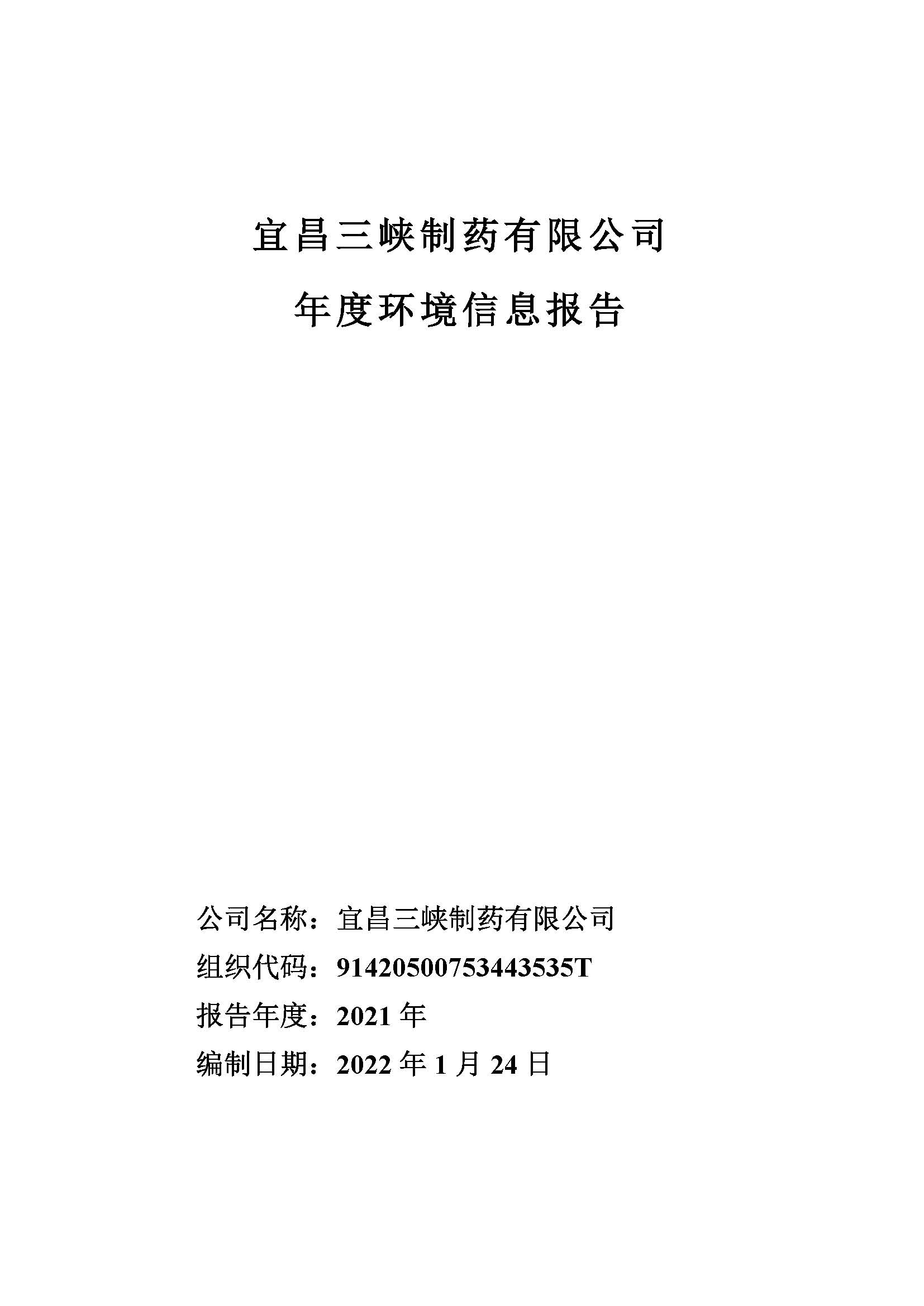 宜昌三峽制藥有限公司2021年度環(huán)保信息報告