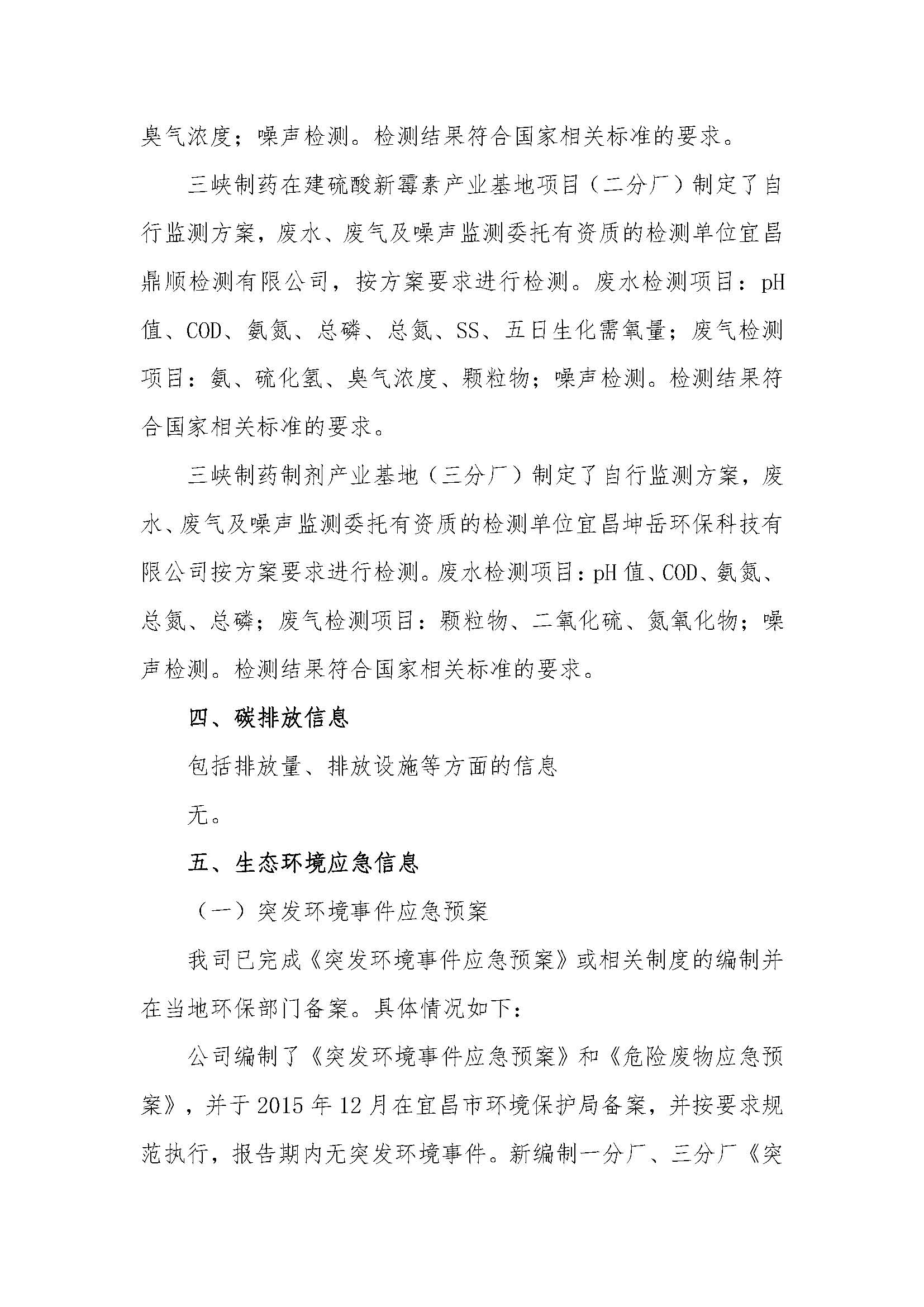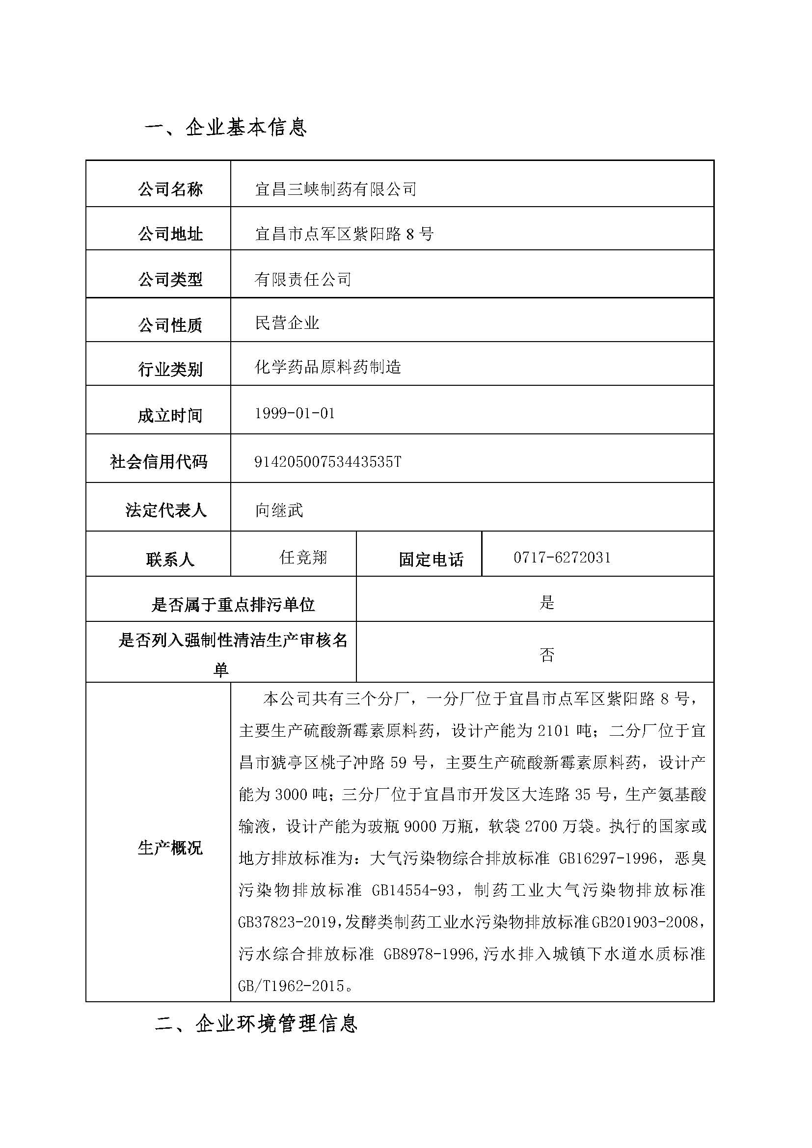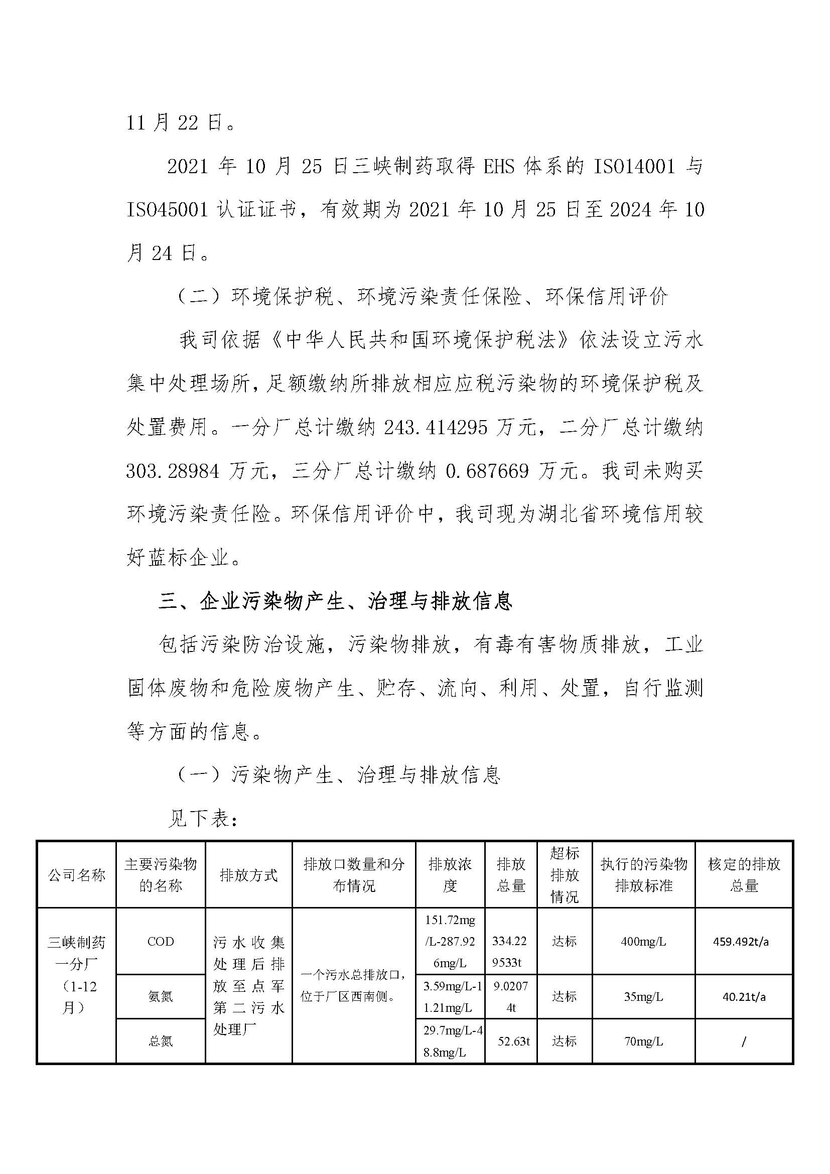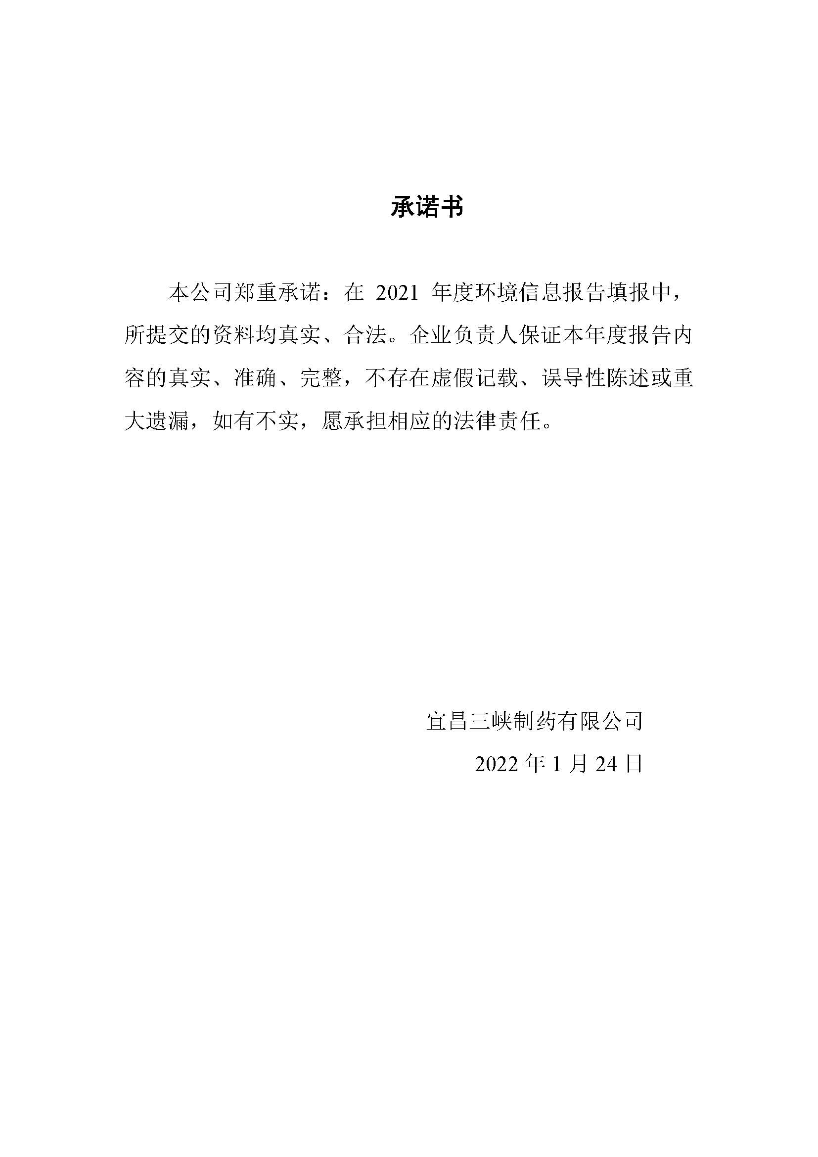 宜昌三峽制藥有限公司2021年度環(huán)保信息報告